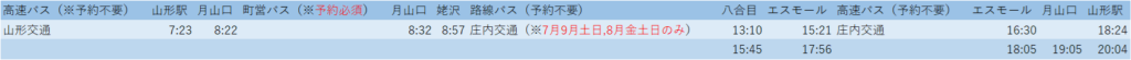 7月から9月までの週末(8月は金曜日も含む)は月山八合目から鶴岡までのバスが運転しております。
