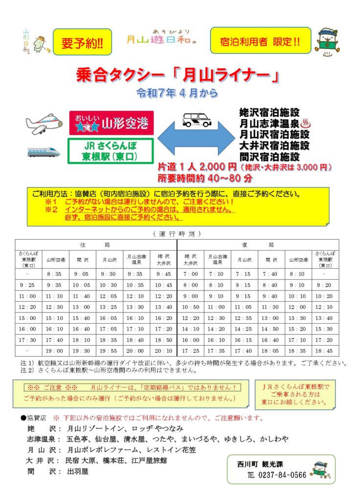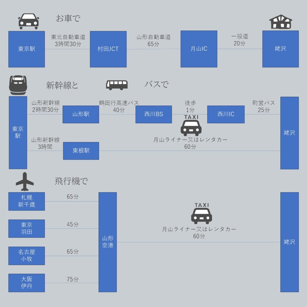 山形空港、東根駅から宿まで直通の