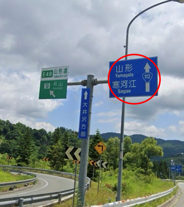 正しくは青い看板の国道112号線山形・寒河江方面へ行く右車線を走るようにしてください。