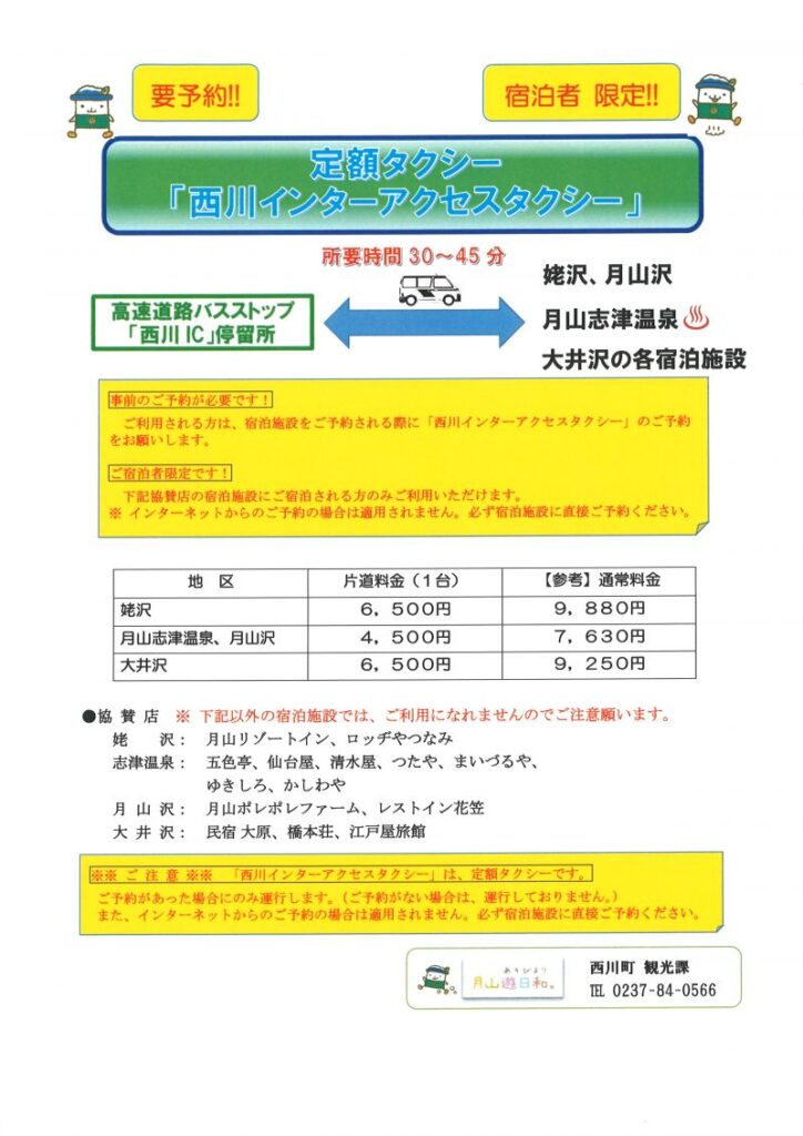 ・高速道路月山口ICを出ますと、宿まではガソリンスタンドやコンビニ等買い物できるお店はございません。